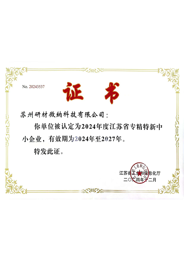 Certified as a Jiangsu Province SPUN Enterprise and a Gazelle Enterprise